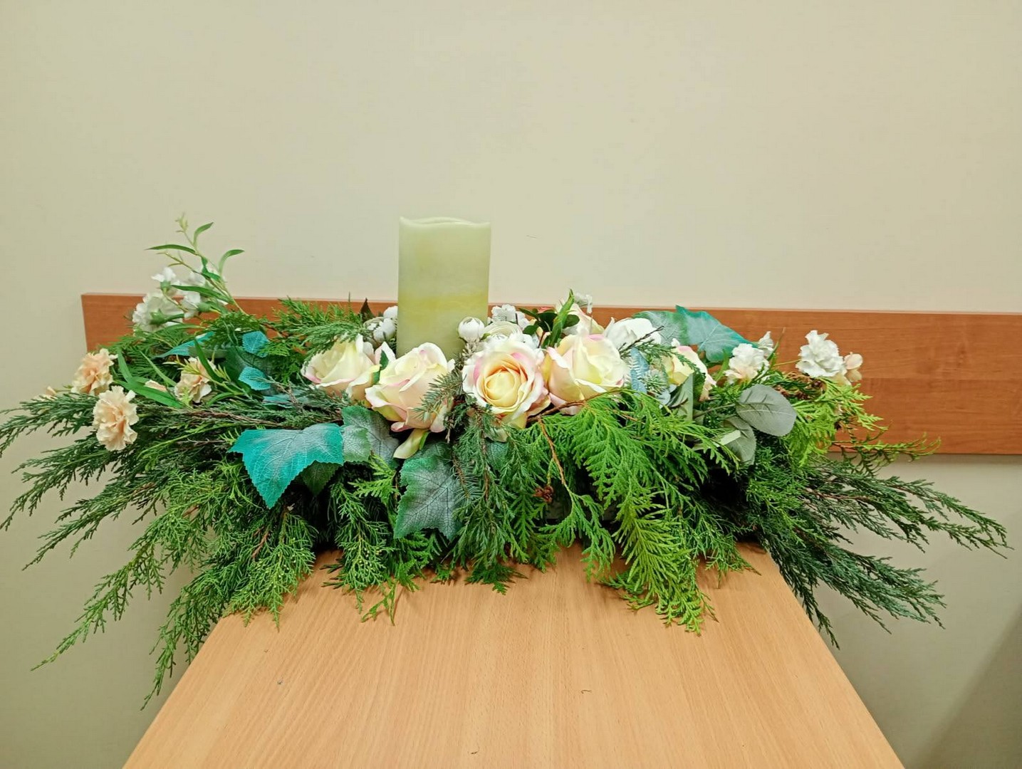 Podczas zajęć ze specjalizacji, klasa Vb technikum architektury krajobrazu przygotowała kompozycje nagrobne związane ze świętem Wszystkich Świętych. Motywem przewodnim dekoracji był znicz, lampion lub inne światełko, a całość należało utrzymać w tonacji monochromatycznej.