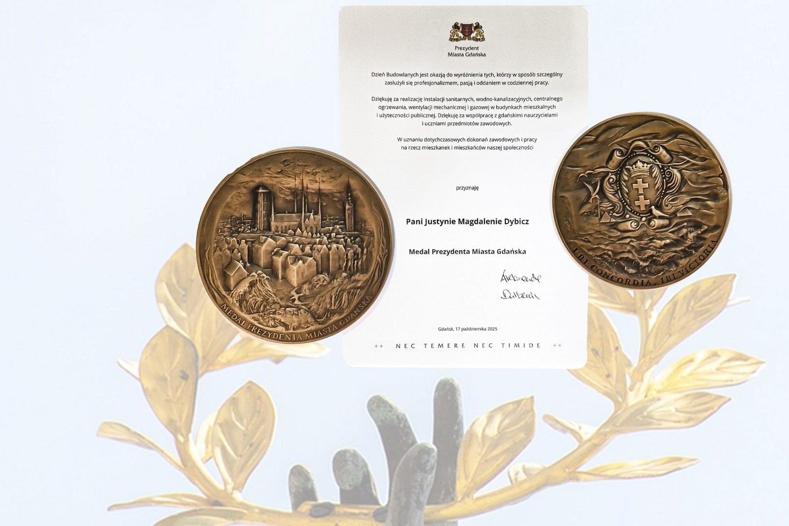 Miło nam poinformować, że nauczycielka przedmiotów zawodowych Zespołu Szkół Budowlanych im. gen. Władysława Sikorskiego w Inowrocławiu pani Justyna Dybicz otrzymała medal Prezydenta Miasta Gdańska Aleksandry Dulkiewicz. Wręczenie odznaczenia osobom zasłużonym dla branży budowlanej odbyło się podczas gali z okazji Dnia Budowlanych 17.10.2025 w Gdańsku. Odznaczenie wręczyli: Zastępczyni Prezydenta Miasta Gdańska pani Monika Chabior oraz Przewodniczący Rady POIIB profesor Krzysztof Wilde. Organizatorem wydarzenia była Pomorska Okręgowa Izba Inżynierów Budownictwa, która zrzesza około 11000 członków pełniących funkcje projektantów, kierowników budów i inspektorów nadzoru. Po zakończeniu części oficjalnej goście mieli okazję do wymiany doświadczeń i rozmów. Spotkanie środowiska inżynierskiego Pomorza, po raz kolejny pokazało, jak istotna jest rola inżynierów budownictwa w rozwoju gospodarczym regionu i kraju oraz współpraca między środowiskami naukowymi, samorządowymi i biznesowymi.