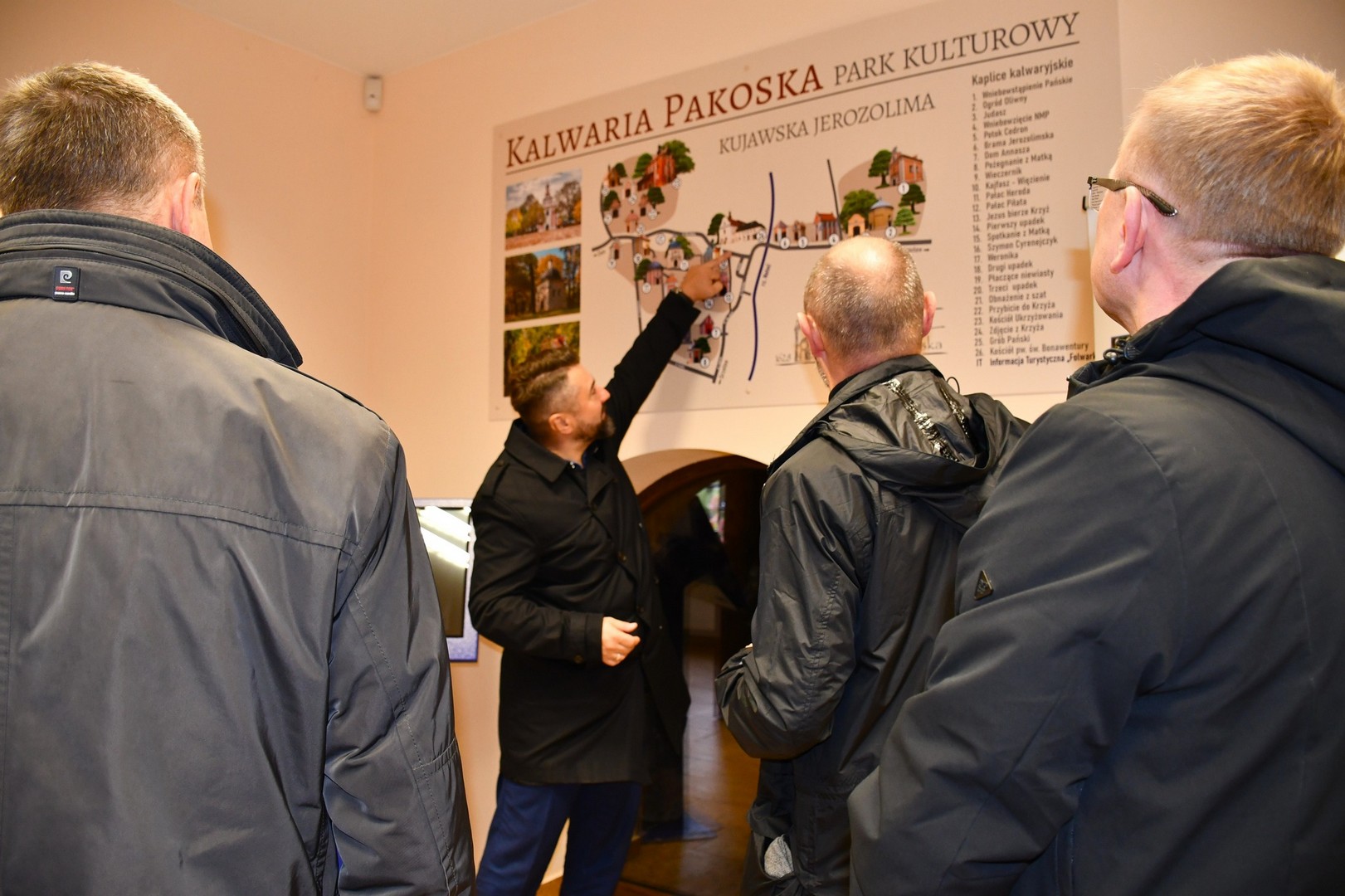 24 października br. w Urzędzie Miejskim w Pakości burmistrz Pakości Michał Siembab gościł dyrektora Marcina Kulsa oraz nauczyciela Sylwię Lewartowską z Zespołu Szkół Budowlanych im. gen. Władysława Sikorskiego w Inowrocławiu. Celem wizyty było omówienie możliwości współpracy pomiędzy szkołą a Gminą Pakość, ze szczególnym uwzględnieniem możliwości prowadzenia zajęć praktycznych dla uczniów klas o profilu architektury krajobrazu. Jeśli pomysł ten uzyska akceptację organu prowadzącego szkoły, którym jest Starosta Powiatu Inowrocławskiego Pani Wiesława Pawłowska będzie doskonałą platformą do promocji rozwoju kształcenia zawodowego w całym naszym powiecie. Nadmienić warto, że zajęcia mogłyby odbywać się wyjątkowym miejscu – Parku Kulturowym Kalwaria Pakoska, którego walory historyczne i przyrodnicze stworzą idealne warunki do nauki i rozwijania umiejętności praktycznych młodzieży. Podczas wizyty burmistrz Pakości Michał Siembab wraz z dyrektorem i uczestnikami spotkania odbył spacer po parku, prezentując jego przestrzeń oraz potencjał. W spotkaniu uczestniczyli również: Radosław Siekierka – zastępca burmistrza Pakości, Agata Kmieć – Kierownik Referatu Promocji, Sportu, Spraw Obywatelskich i Pozyskiwania Funduszy, Stanisław Burdyna – Prezes Przedsiębiorstwa Usług Gminnych w Pakości oraz Dariusz Laskowski – przedstawiciel PUG Pakość. Spotkanie przebiegło w serdecznej i konstruktywnej atmosferze. Wspólne inicjatywy szkół i samorządów mogą połączyć edukację z praktyką, a także promocję dziedzictwa kulturowego i krajobrazowego regionu.