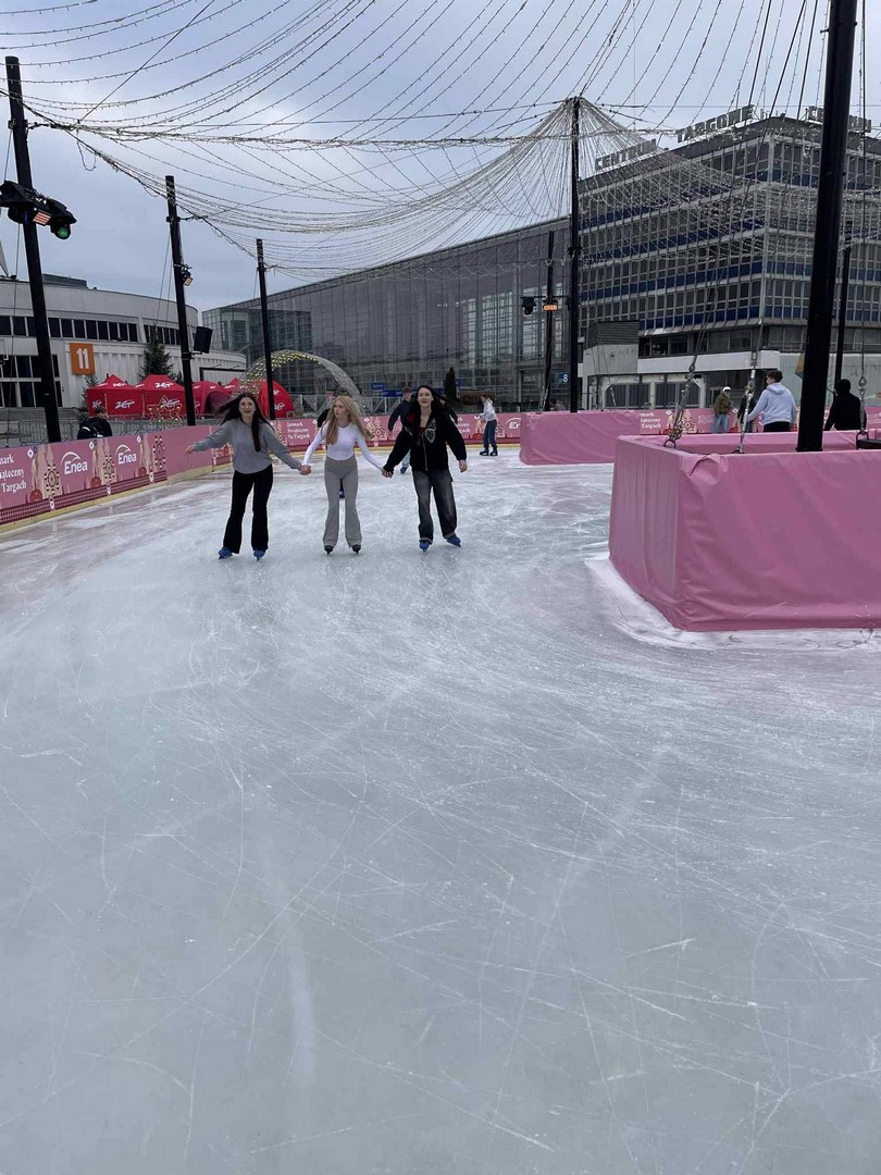 12 grudnia 2025 r. uczniowie klas I technikum, wraz z opiekunami, wzięli udział w wycieczce na jarmark bożonarodzeniowy do Poznania. Młodzież miała okazję zapoznać się z tradycjami świątecznymi, obejrzeć oryginalne ozdoby choinkowe, różnorodne wypieki piernikowe oraz zaprzyjaźnić się z gadającym łosiem, który mówił do gości gwarą. Uczniowie mogli również zakupić pamiątkowe kubki i spróbować regionalnych przysmaków. Dużą popularnością wśród młodzieży cieszyło się lodowisko, na którym integrowali się uczniowie wszystkich klas pierwszych. Tego dnia nie zabrakło wspólnych rozmów o tradycjach bożonarodzeniowych – w świątecznym klimacie i przy nastrojowej muzyce.