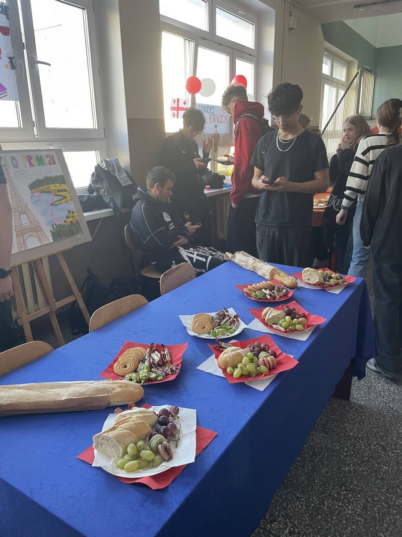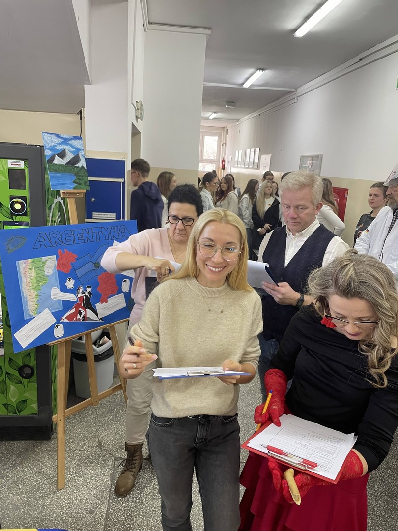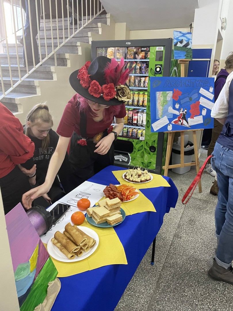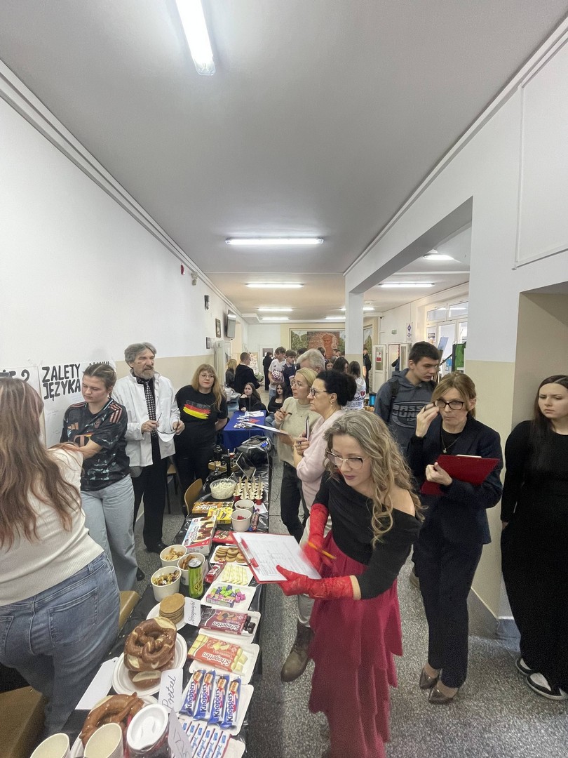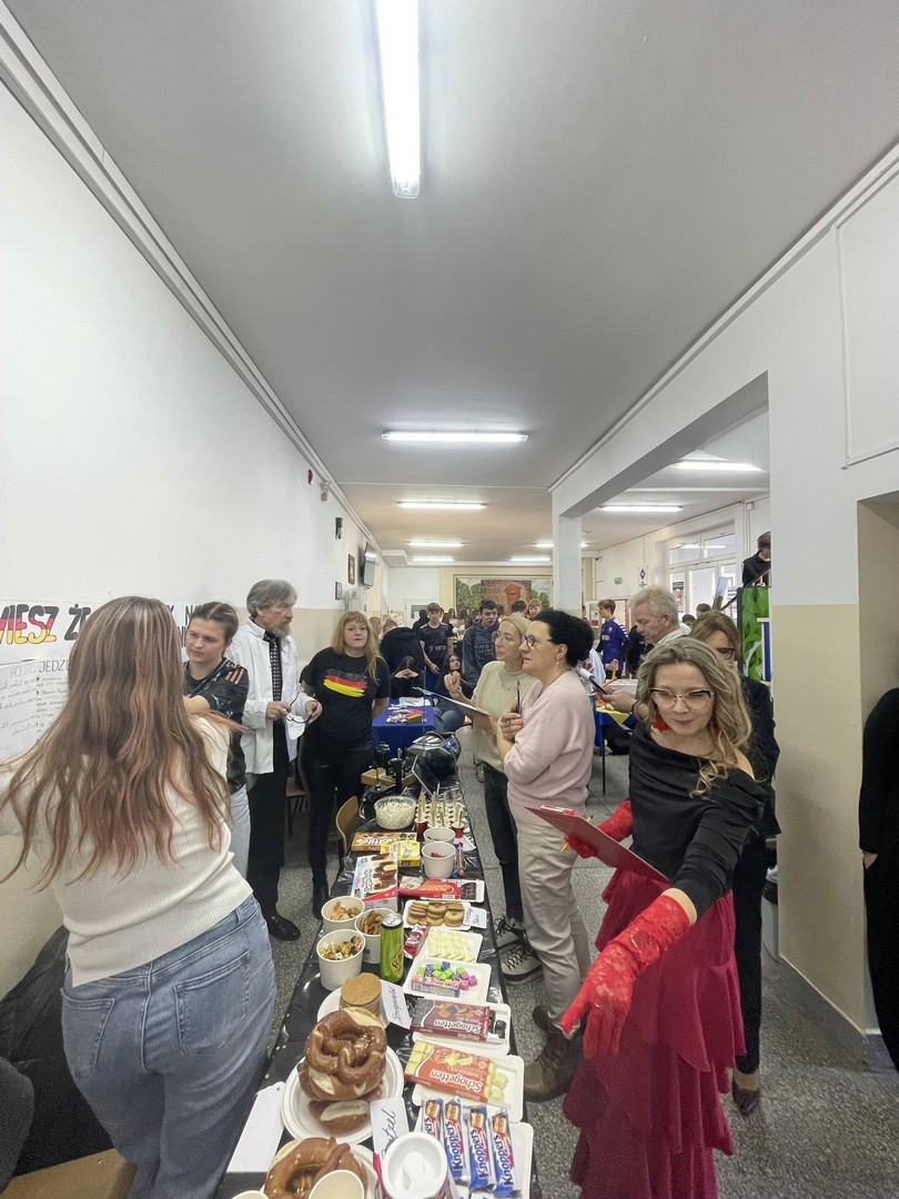 Dnia 19 stycznia 2026 roku w naszej szkole obchodziliśmy Dzień Języków Obcych, którego organizatorem była Anna Jankowska, nauczyciel języka angielskiego. Uczniowie wzięli udział w międzyklasowej rywalizacji o najlepiej zaprezentowany przez nich kraj, który wylosowali już w październiku i mogli przygotować jego promocję, która chwyci za serca jury konkursu w osobach: pani Izabela Kwiatkowska, pani Sylwia Sztandur, pani Magdalena Wrona, pan Sławomir Dudek oraz pani Anna Jankowska. Wytypowani reprezentanci, za pomocą ręcznie wykonanych plakatów, prezentowali przygotowane wcześniej informacje promujące naukę języka urzędowego swojego kraju a przy pomocy drugiego plakatu wzbudzali fascynację swoich widzów ciekawostkami geograficznymi, politycznymi oraz ze świata popkultury. Ponadto uczniowie mogli przygotować stroje, przekąski, napoje, muzykę oraz elementy, które miały przybliżyć kulturę wylosowanych krajów. Tradycyjne tapas, spaghetti, popcorn, hamburgery, churros, bagietki, naleśniki i wiele wiele innych – trafiły przez żołądek do serc komisji i nie tylko. Podczas wydarzenia emitowano utwory muzyczne w różnych językach świata. Głównym celem było podkreślenie znaczenia nauki języków obcych w dzisiejszym świecie oraz promowanie różnorodności kulturowej oraz motywowanie do przełamywania barier językowych. Wraz z pomocą swoich nauczycieli, którzy również wykazali się zaangażowaniem, pokazali różnorodne stroje a jury miało twardy orzech do zgryzienia, obradując i przyznając punkty w różnych kategoriach. Obchody Dnia Języków Obcych cieszyły się dużym zainteresowaniem społeczności szkolnej. Uczniowie wykazali się ogromną kreatywnością. Wydarzenie przyczyniło się do integracji grup rówieśniczych, wzmocnienia pozytywnych relacji uczniów i nauczycieli oraz pozytywnie wpłynęło na nastawienie do nauki języków obcych. Rozdanie dyplomów oraz nagród sfinansowanych przez Radę Rodziców odbędzie się na uroczystym apelu podsumowującym I semestr nauki.