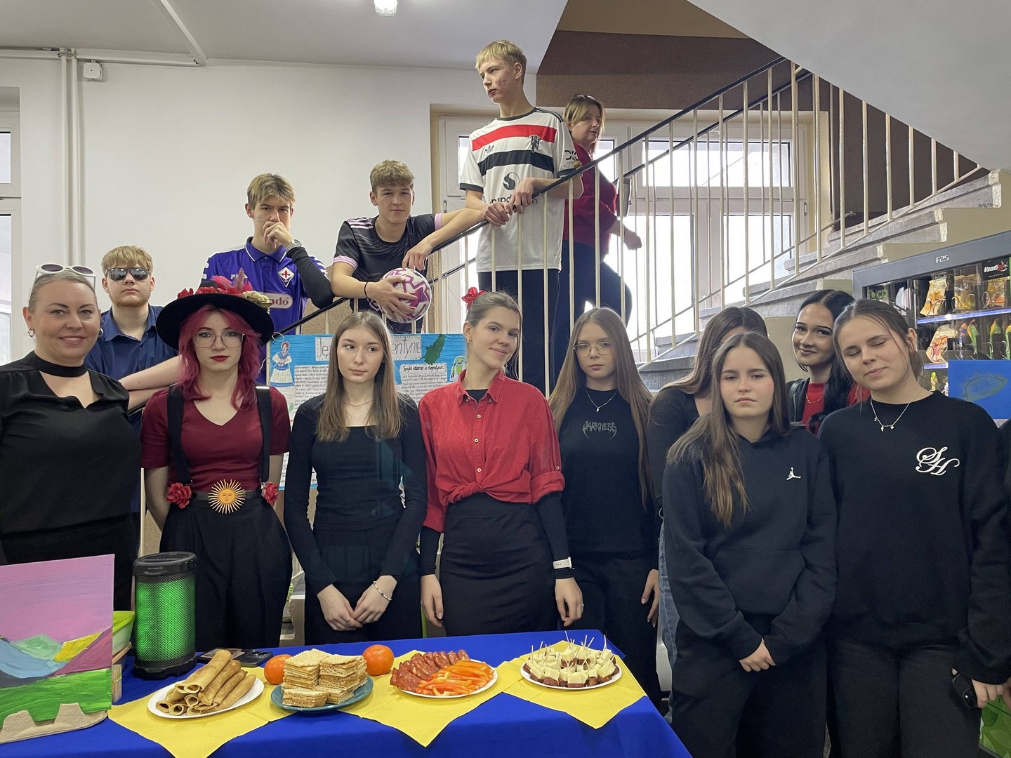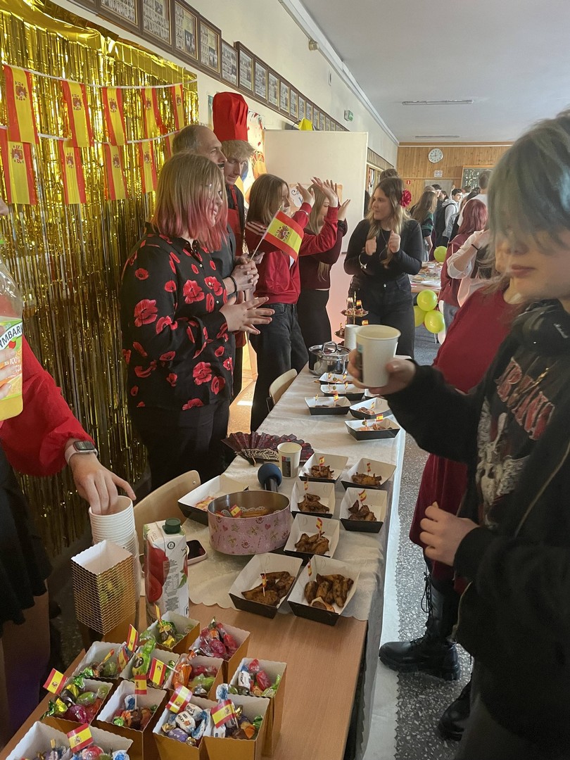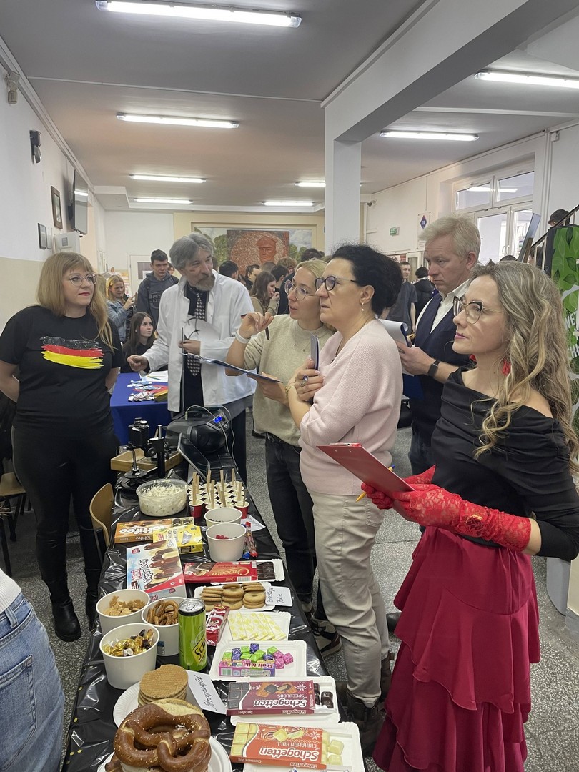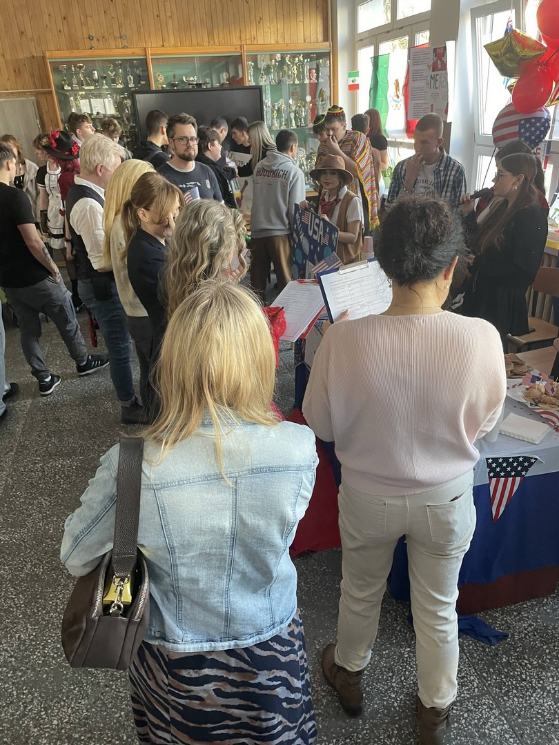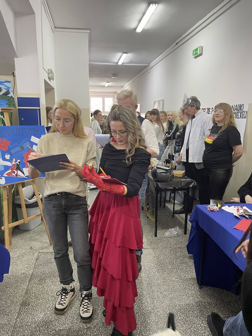 Dnia 19 stycznia 2026 roku w naszej szkole obchodziliśmy Dzień Języków Obcych, którego organizatorem była Anna Jankowska, nauczyciel języka angielskiego. Uczniowie wzięli udział w międzyklasowej rywalizacji o najlepiej zaprezentowany przez nich kraj, który wylosowali już w październiku i mogli przygotować jego promocję, która chwyci za serca jury konkursu w osobach: pani Izabela Kwiatkowska, pani Sylwia Sztandur, pani Magdalena Wrona, pan Sławomir Dudek oraz pani Anna Jankowska. Wytypowani reprezentanci, za pomocą ręcznie wykonanych plakatów, prezentowali przygotowane wcześniej informacje promujące naukę języka urzędowego swojego kraju a przy pomocy drugiego plakatu wzbudzali fascynację swoich widzów ciekawostkami geograficznymi, politycznymi oraz ze świata popkultury. Ponadto uczniowie mogli przygotować stroje, przekąski, napoje, muzykę oraz elementy, które miały przybliżyć kulturę wylosowanych krajów. Tradycyjne tapas, spaghetti, popcorn, hamburgery, churros, bagietki, naleśniki i wiele wiele innych – trafiły przez żołądek do serc komisji i nie tylko. Podczas wydarzenia emitowano utwory muzyczne w różnych językach świata. Głównym celem było podkreślenie znaczenia nauki języków obcych w dzisiejszym świecie oraz promowanie różnorodności kulturowej oraz motywowanie do przełamywania barier językowych. Wraz z pomocą swoich nauczycieli, którzy również wykazali się zaangażowaniem, pokazali różnorodne stroje a jury miało twardy orzech do zgryzienia, obradując i przyznając punkty w różnych kategoriach. Obchody Dnia Języków Obcych cieszyły się dużym zainteresowaniem społeczności szkolnej. Uczniowie wykazali się ogromną kreatywnością. Wydarzenie przyczyniło się do integracji grup rówieśniczych, wzmocnienia pozytywnych relacji uczniów i nauczycieli oraz pozytywnie wpłynęło na nastawienie do nauki języków obcych. Rozdanie dyplomów oraz nagród sfinansowanych przez Radę Rodziców odbędzie się na uroczystym apelu podsumowującym I semestr nauki.