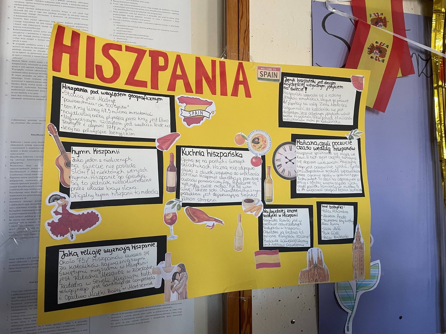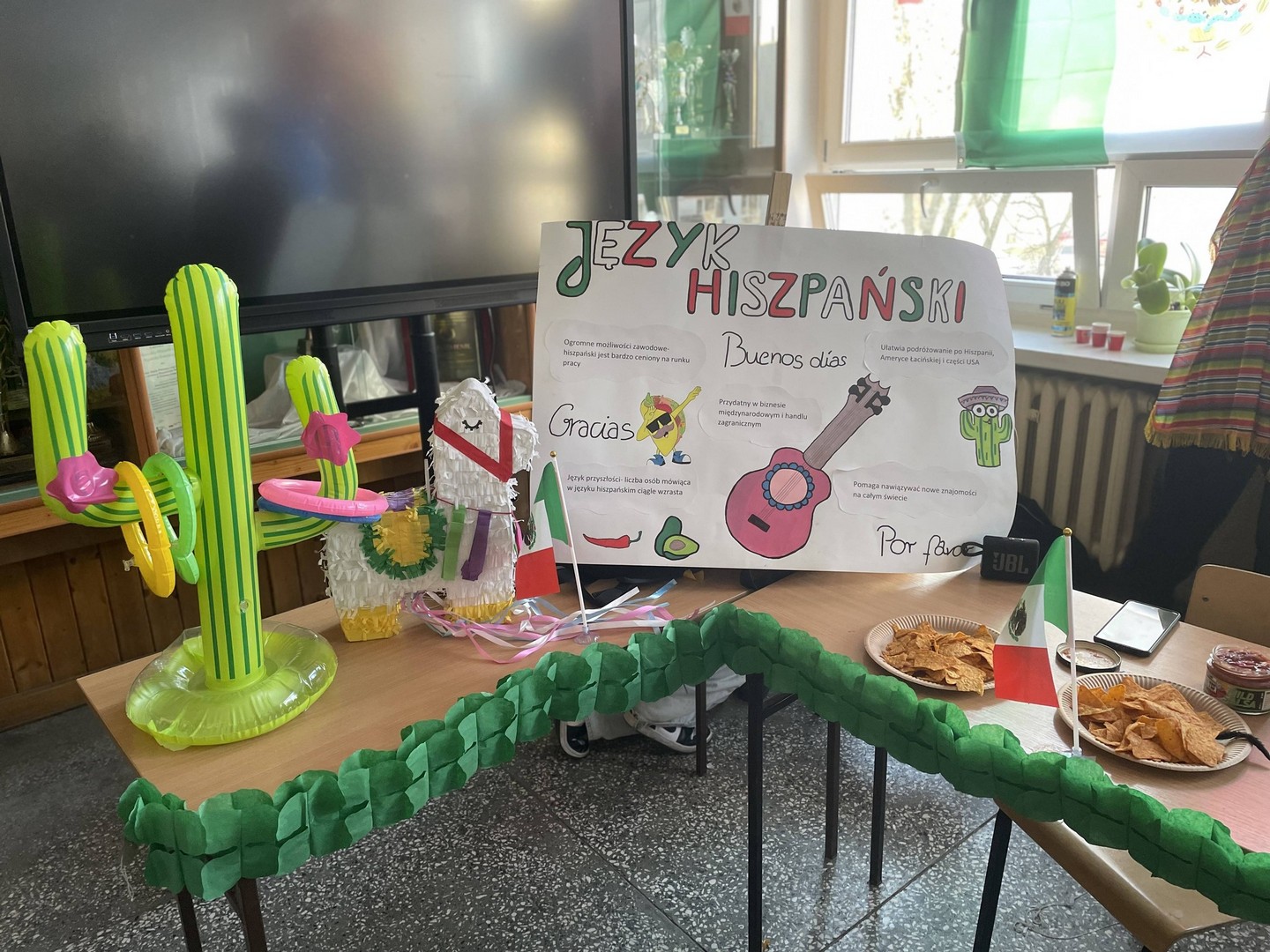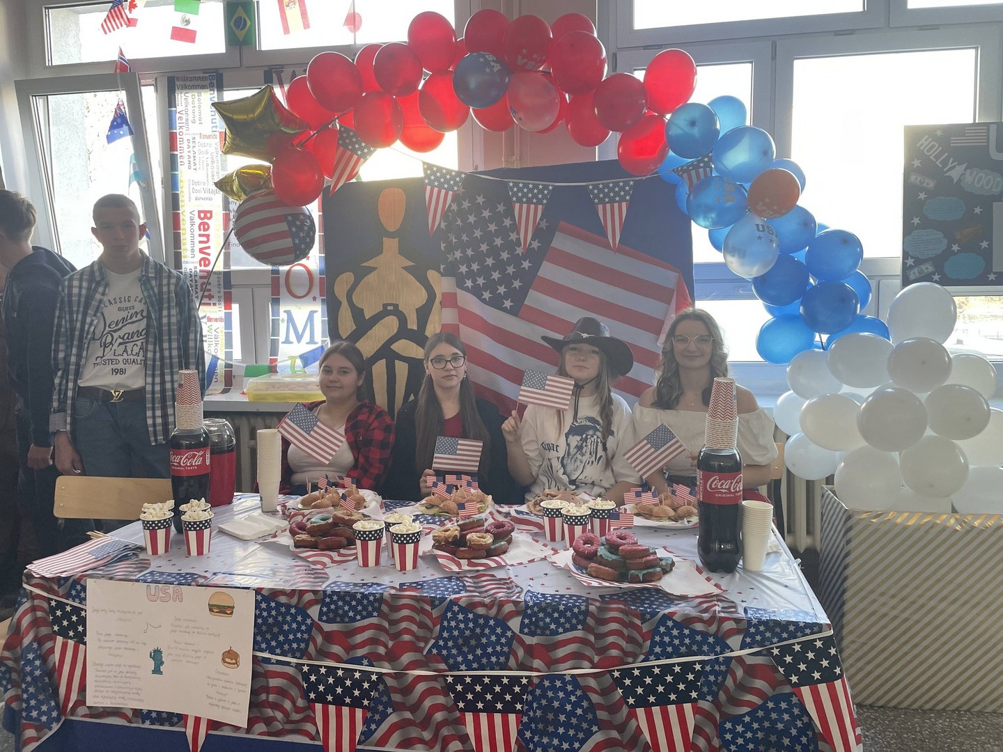 Dnia 19 stycznia 2026 roku w naszej szkole obchodziliśmy Dzień Języków Obcych, którego organizatorem była Anna Jankowska, nauczyciel języka angielskiego. Uczniowie wzięli udział w międzyklasowej rywalizacji o najlepiej zaprezentowany przez nich kraj, który wylosowali już w październiku i mogli przygotować jego promocję, która chwyci za serca jury konkursu w osobach: pani Izabela Kwiatkowska, pani Sylwia Sztandur, pani Magdalena Wrona, pan Sławomir Dudek oraz pani Anna Jankowska. Wytypowani reprezentanci, za pomocą ręcznie wykonanych plakatów, prezentowali przygotowane wcześniej informacje promujące naukę języka urzędowego swojego kraju a przy pomocy drugiego plakatu wzbudzali fascynację swoich widzów ciekawostkami geograficznymi, politycznymi oraz ze świata popkultury. Ponadto uczniowie mogli przygotować stroje, przekąski, napoje, muzykę oraz elementy, które miały przybliżyć kulturę wylosowanych krajów. Tradycyjne tapas, spaghetti, popcorn, hamburgery, churros, bagietki, naleśniki i wiele wiele innych – trafiły przez żołądek do serc komisji i nie tylko. Podczas wydarzenia emitowano utwory muzyczne w różnych językach świata. Głównym celem było podkreślenie znaczenia nauki języków obcych w dzisiejszym świecie oraz promowanie różnorodności kulturowej oraz motywowanie do przełamywania barier językowych. Wraz z pomocą swoich nauczycieli, którzy również wykazali się zaangażowaniem, pokazali różnorodne stroje a jury miało twardy orzech do zgryzienia, obradując i przyznając punkty w różnych kategoriach. Obchody Dnia Języków Obcych cieszyły się dużym zainteresowaniem społeczności szkolnej. Uczniowie wykazali się ogromną kreatywnością. Wydarzenie przyczyniło się do integracji grup rówieśniczych, wzmocnienia pozytywnych relacji uczniów i nauczycieli oraz pozytywnie wpłynęło na nastawienie do nauki języków obcych. Rozdanie dyplomów oraz nagród sfinansowanych przez Radę Rodziców odbędzie się na uroczystym apelu podsumowującym I semestr nauki.