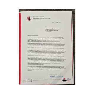 LIST GRATULACYJNY DLA DYREKTORA ZSB W INOWROCŁAWIU