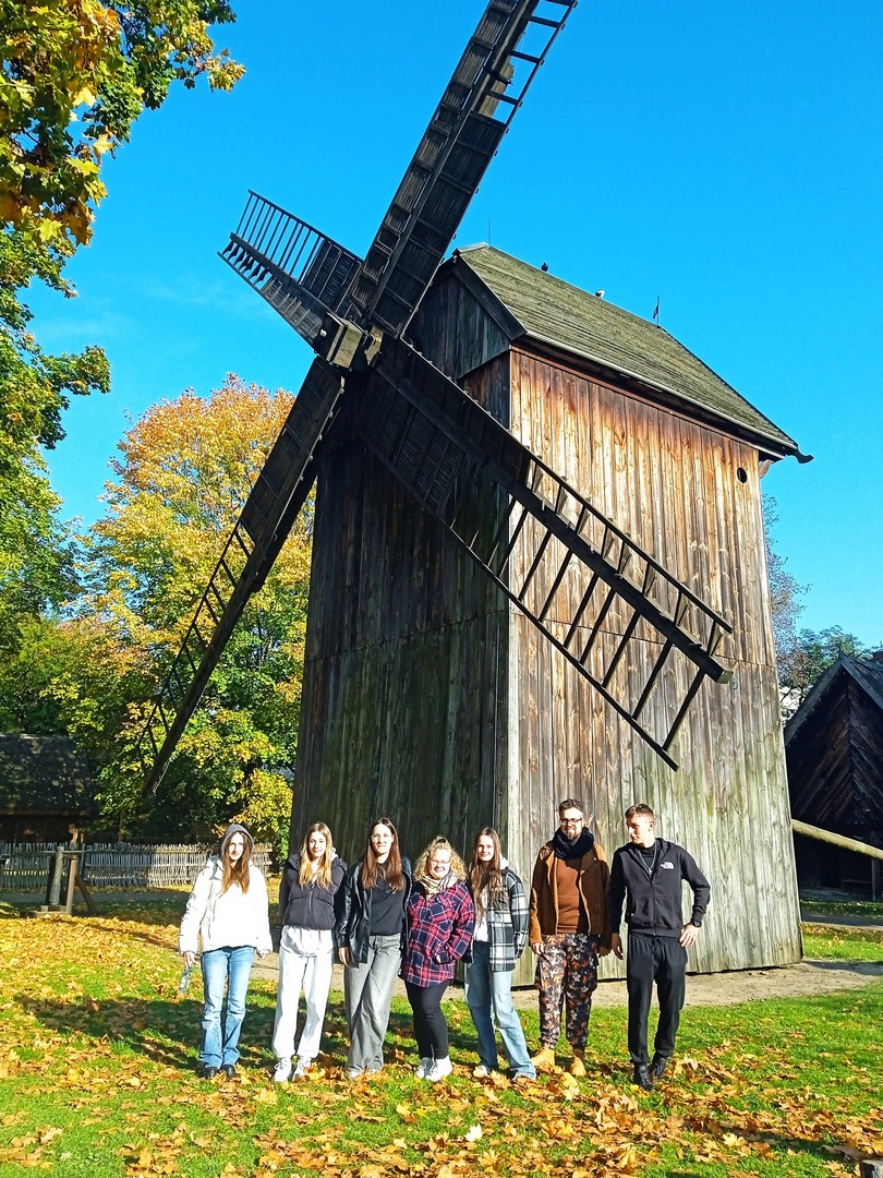 Z okazji obchodów Dnia Krajobrazu, którego tegoroczne hasło brzmi: ,,Symbioza - Przyroda i Miasto w jednym krajobrazie’’, uczniowie Zespołu Szkół Budowlanych wzięli udział w wycieczce edukacyjno-krajoznawczej do Torunia. Celem wyjazdu było nie tylko poznanie walorów przyrodniczych i kulturowych miasta, ale również zwrócenie uwagi na znaczenie krajobrazu w codziennym życiu człowieka i dostrzeżenie występującej symbiozy. Pierwszym punktem programu był spacer po jednym z toruńskich parków, gdzie uczniowie mogli obserwować zmieniającą się przyrodę i podziwiać piękno jesiennego krajobrazu. Ciepłe barwy liści, cisza i naturalne otoczenie sprzyjały refleksji nad wpływem pór roku na otaczające nas środowisko. Następnie młodzież skupiła się na krajobrazie miejskim – zabytkowa architektura Torunia, urokliwe uliczki Starego Miasta i unikalny klimat tego miejsca zrobiły duże wrażenie na uczestnikach wyjazdu. Wizyta w Muzeum Etnograficznym pozwoliła uczniom pogłębić wiedzę na temat życia codziennego dawnych mieszkańców regionu oraz lepiej zrozumieć związek człowieka z otaczającym go środowiskiem na przestrzeni wieków. Nie zabrakło również czasu wolnego, który uczniowie wykorzystali na samodzielne odkrywanie uroków Torunia – odwiedzając lokalne kawiarnie, sklepy z pamiątkami oraz podziwiając zabytki, z których słynie to historyczne miasto. Wycieczka była nie tylko okazją do zdobycia wiedzy, ale również do integracji, odpoczynku i wspólnego przeżywania piękna polskiego krajobrazu. To był dzień pełen wrażeń, inspiracji i nowych doświadczeń, który na długo pozostanie w pamięci uczestników.