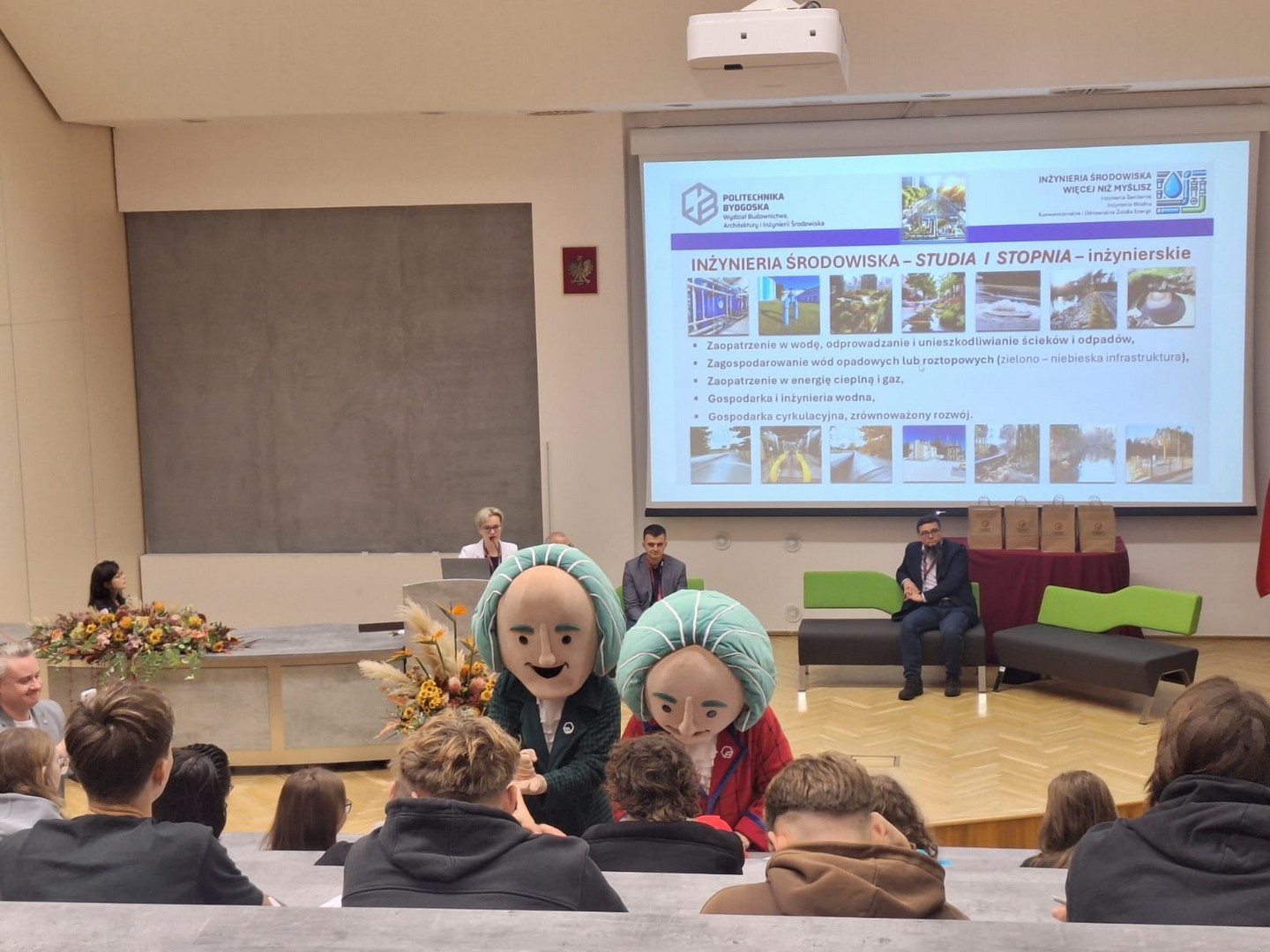 Dnia 24.10.2025r. grupa uczniów kl. IVa, kształcących się w zawodzie technik budownictwa uczestniczyła w Inżynieraliach, które miały miejsce na Politechnice Bydgoskiej.Młodzież uczestniczyła w spotkaniu z wykładowcami Wydziału Budownictwa, Architektury i Inżynierii Środowiska, podczas którego zapoznała się z kierunkami studiów proponowanymi przez ten wydział, a także w warsztatach zawodowych „Termowizja i diagnostyka” oraz „W świecie paragrafów - dlaczego nieznajomość prawa szkodzi”. Politechnika Bydgoska jest uczelnią, która proponuje wiele możliwości dalszego kształcenia dla uczniów Budowlanki, między innymi na kierunkach związanych z geodezją, architekturą, energetyką odnawialną, architekturą krajobrazu, budownictwem, architekturą wnętrz, a nawet z prawem i medycyną. Wyjazd był okazją do poszerzenia wiedzy i umiejętności zawodowych młodzieży naszej szkoły, a także do rozwijania współpracy między Zespołem Szkół Budowlanych w Inowrocławiu a Politechniką Bydgoską.