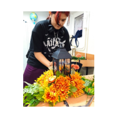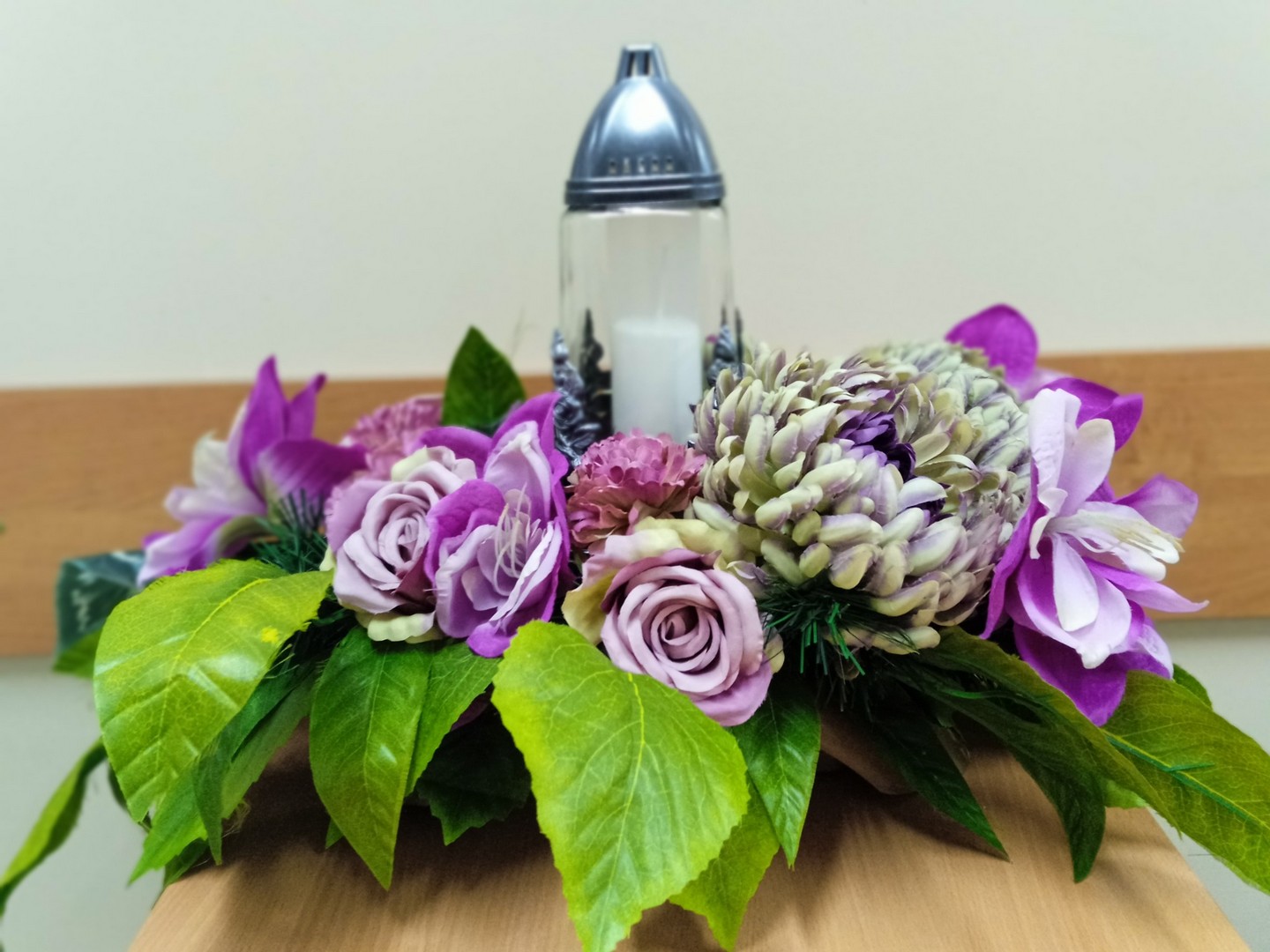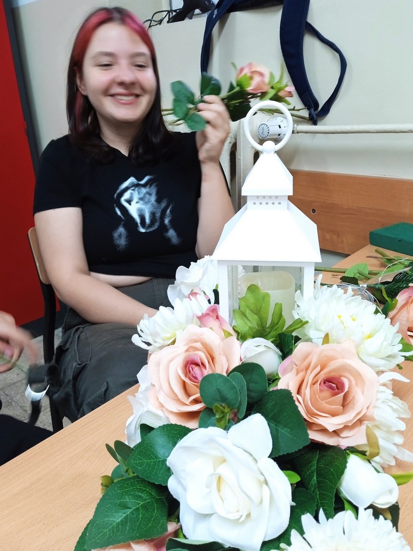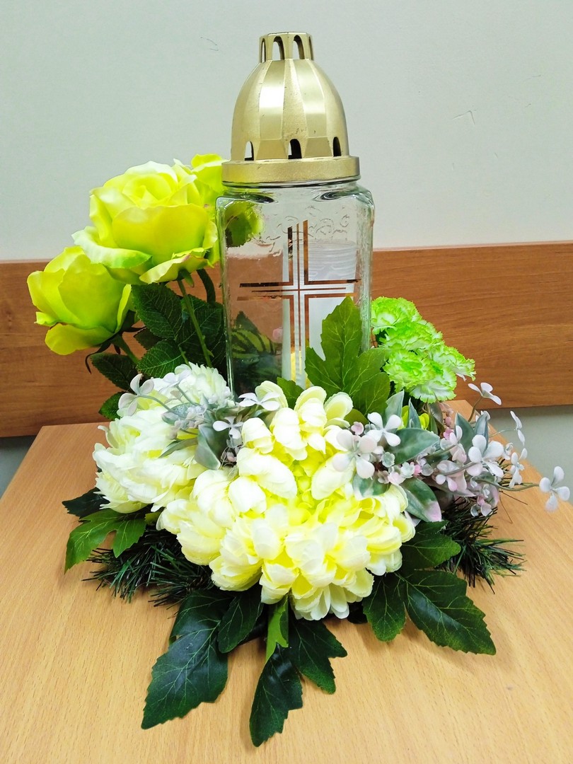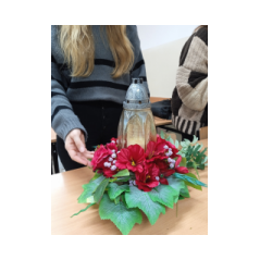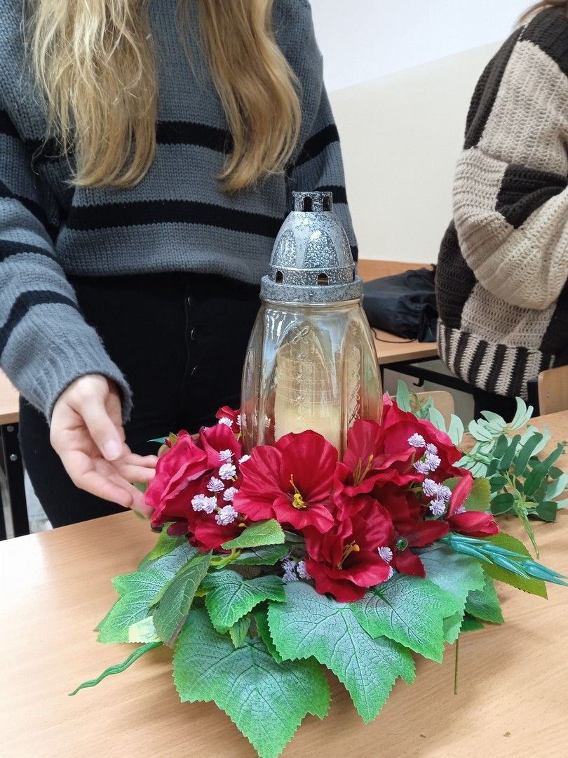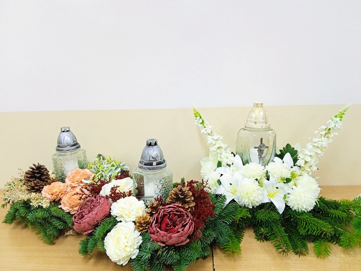 Podczas zajęć ze specjalizacji, klasa Vb technikum architektury krajobrazu przygotowała kompozycje nagrobne związane ze świętem Wszystkich Świętych. Motywem przewodnim dekoracji był znicz, lampion lub inne światełko, a całość należało utrzymać w tonacji monochromatycznej.