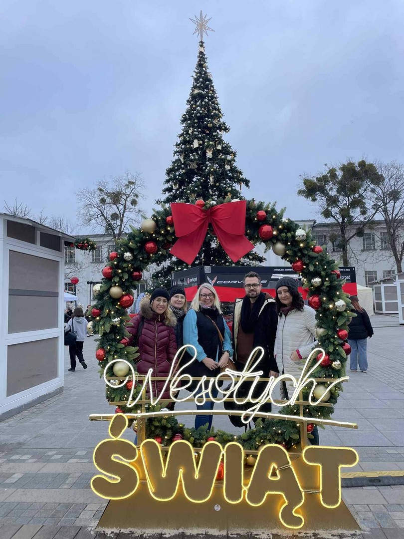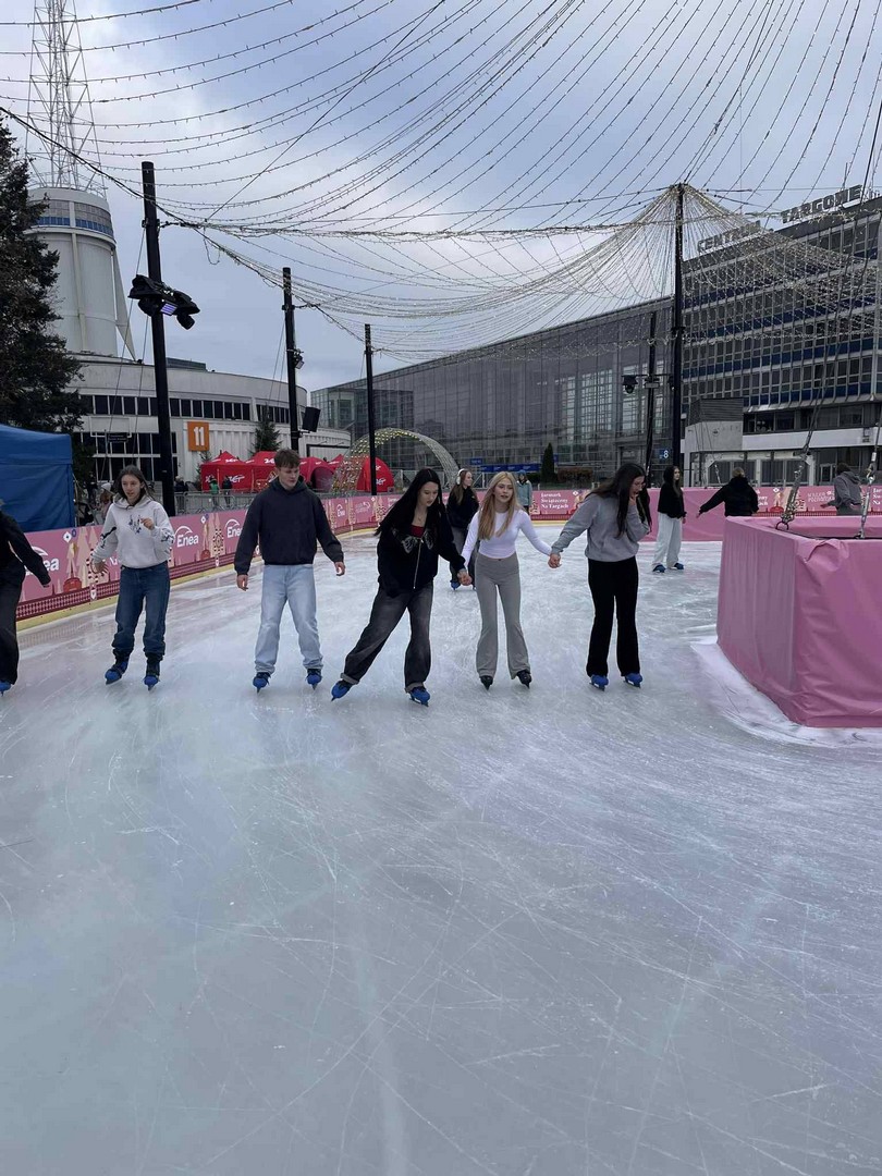 12 grudnia 2025 r. uczniowie klas I technikum, wraz z opiekunami, wzięli udział w wycieczce na jarmark bożonarodzeniowy do Poznania. Młodzież miała okazję zapoznać się z tradycjami świątecznymi, obejrzeć oryginalne ozdoby choinkowe, różnorodne wypieki piernikowe oraz zaprzyjaźnić się z gadającym łosiem, który mówił do gości gwarą. Uczniowie mogli również zakupić pamiątkowe kubki i spróbować regionalnych przysmaków. Dużą popularnością wśród młodzieży cieszyło się lodowisko, na którym integrowali się uczniowie wszystkich klas pierwszych. Tego dnia nie zabrakło wspólnych rozmów o tradycjach bożonarodzeniowych – w świątecznym klimacie i przy nastrojowej muzyce.