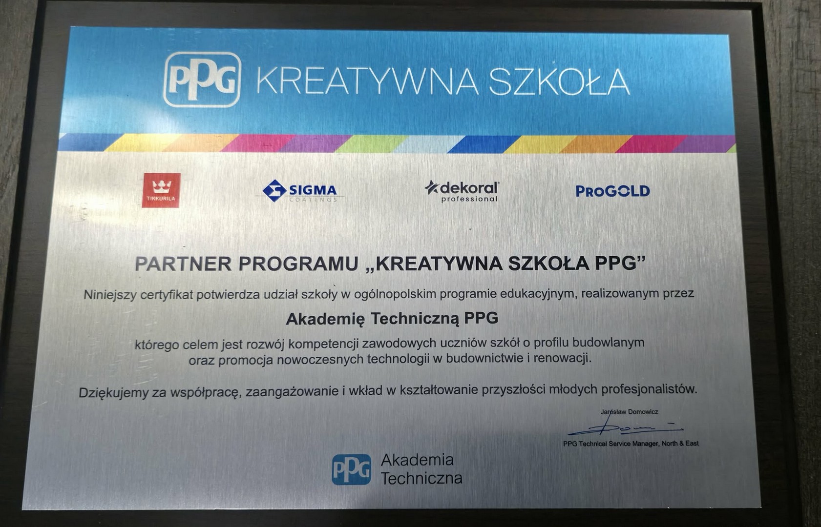 Serdecznie dziękujemy za możliwość bycia Partnerem w Programie Kreatywna Szkoła PPG dzięki czemu razem mamy wpływ na rozwój kompetencji zawodowych naszych uczniów.